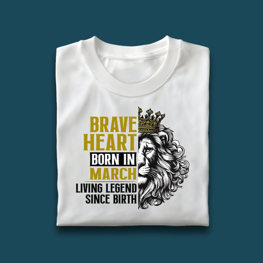 Brave Heart Born in 1990 Premium Cotton Birthday T-shirt