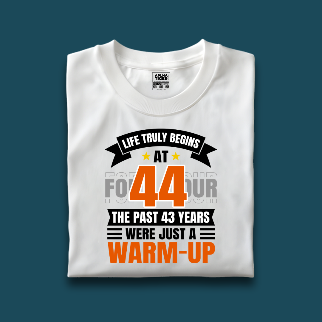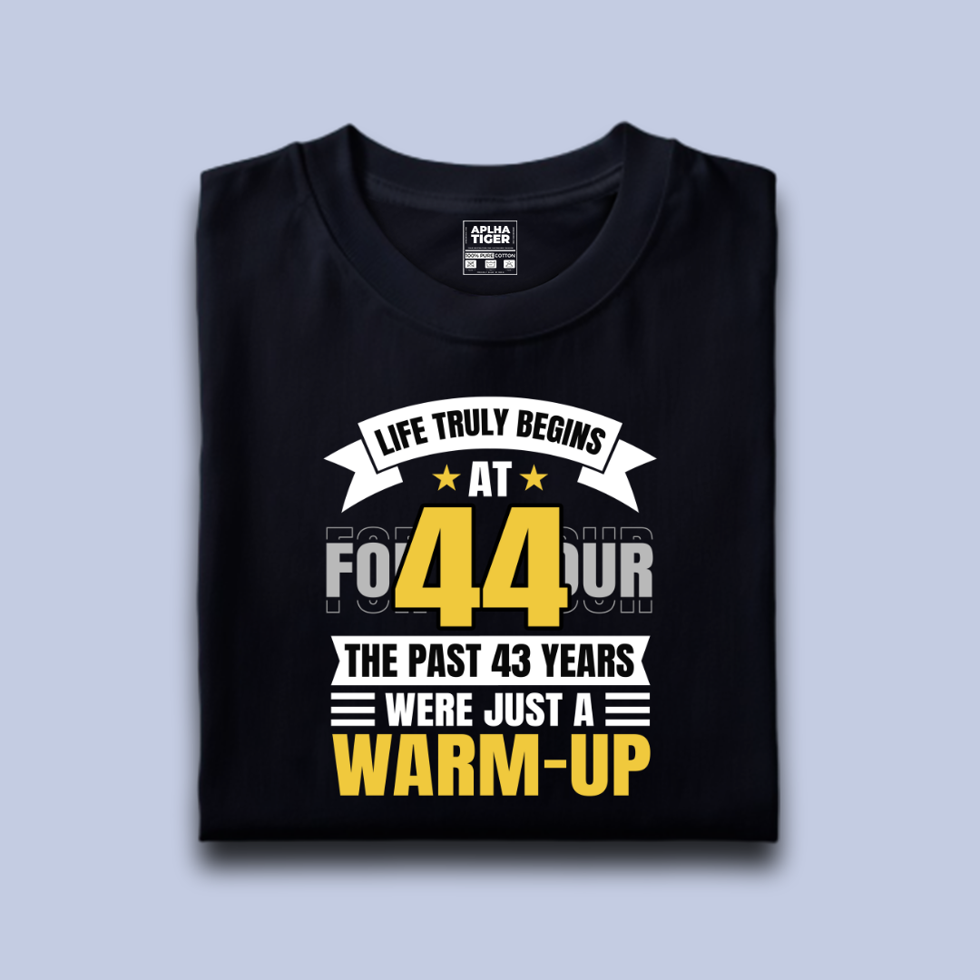 π Life begins at 44! Celebrate this milestone with our premium "Life Truly Begins at 44 β The Last 43 Years Were Just a Warm-Up" T-shirt. Made from high-quality cotton, this stylish and comfortable tee is perfect for anyone turning 44 years young!