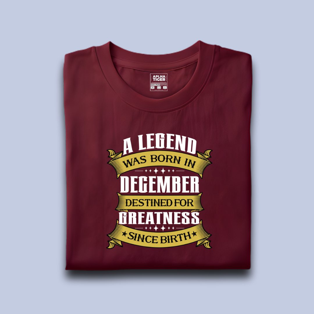 Embrace your legendary status with our "A Legend Was Born in December - Destined for Greatness Since Birth" t-shirt. Featuring bold text and an elegant banner design, this shirt is perfect for proud December-born individuals. Crafted from high-quality, comfortable fabric, it’s perfect for everyday wear or as a special birthday gift. Show off your December pride and destined greatness with this standout tee.